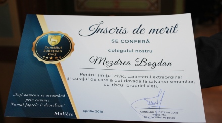 Home»ACTUALITATE»Eroul de la Târgu Cărbunești a primit un „Înscris de merit“ din partea C.J. Gorj. Va fi declarat „Cetățean de onoare“