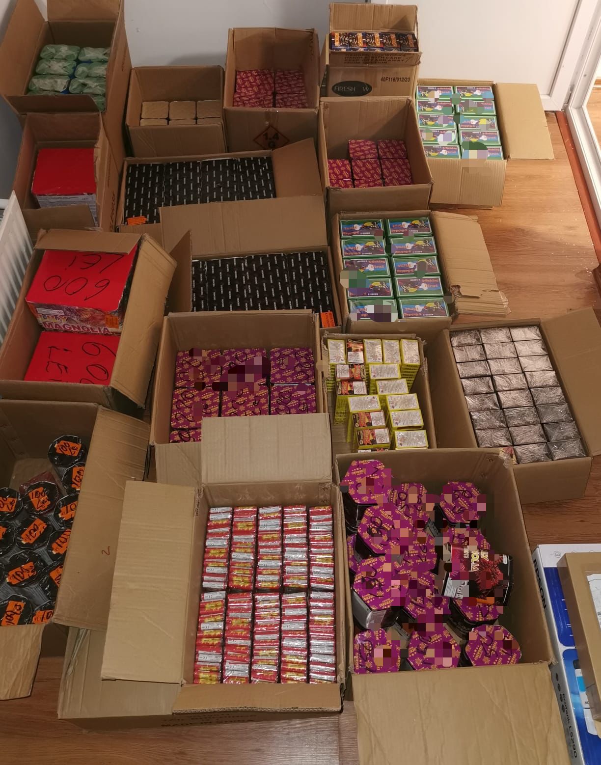 În acest sens, polițiștii au identificat în cele două locații 39.600 de articole pirotehnice și 87 de baterii de artificii, în greutate totală de 350 de kg, din categoriile P1, F1 și F2.