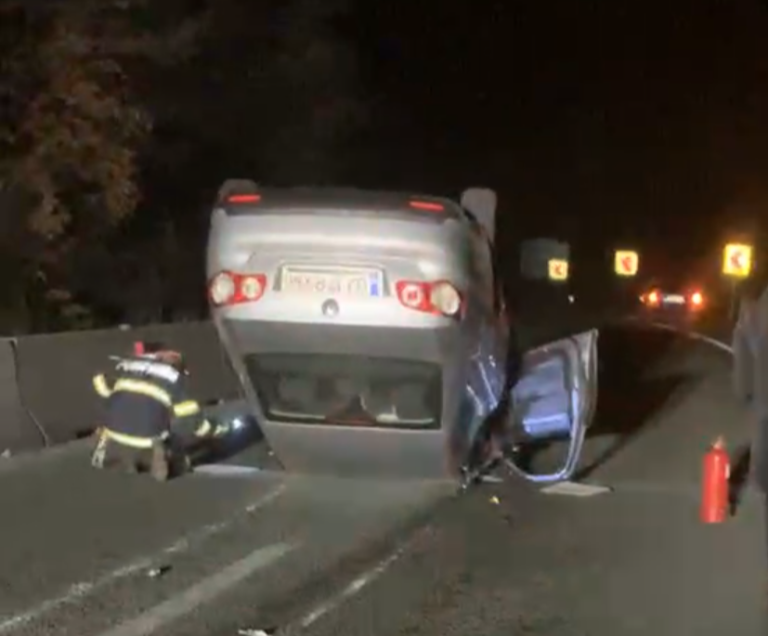 Un autoturism s-a răsturnat, noaptea trecută, în zona Pistestii din Deal. O femeie aflată la volan a intrat în parapet și s-a răsturnat. Din fericire, nimeni nu a fost rănit.