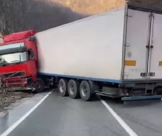Camionul a blocat pe diagonală drumul, după ce a întrat în coliziune cu zidurile unei case, de pe marginea carosabilului. În urma evenimentului nu au rezultat victime.